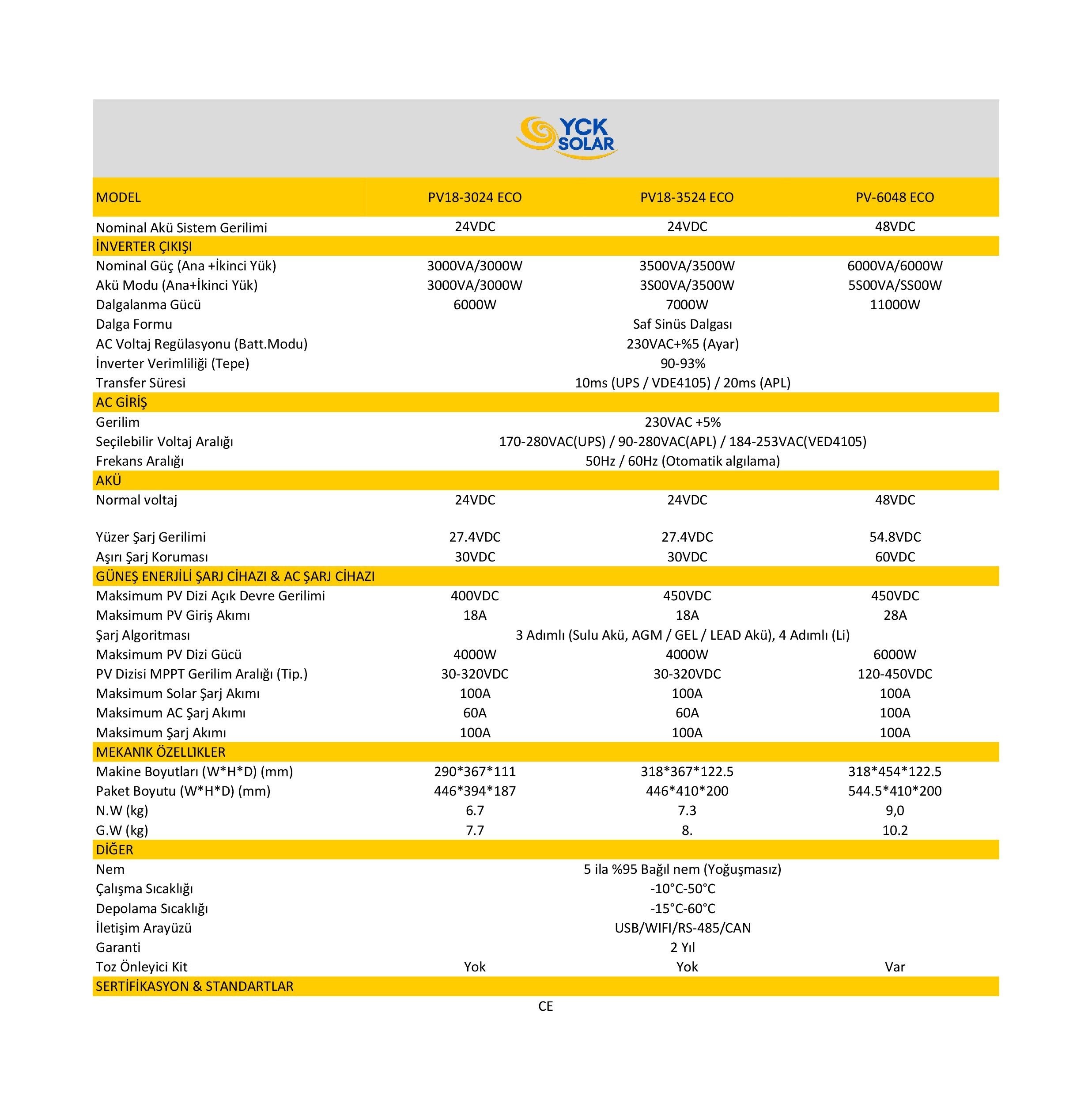 PV1800 ECO, invertör, MPPT güneş şarj cihazı ve akü şarj cihazı işlevlerini bir araya getiren çok işlevli bir invertör/şarj cihazıdır ve taşınabilir boyutta kesintisiz güç desteği sunar. PV1800 ECO Serisi akü olmadan da çalışabilir. Maksimum PV giriş voltajı 400V/450V/500V'a ulaşabilir, bu da müşterilerin güneş enerjisini tam performansda kullanmalarına yardımcı olur.